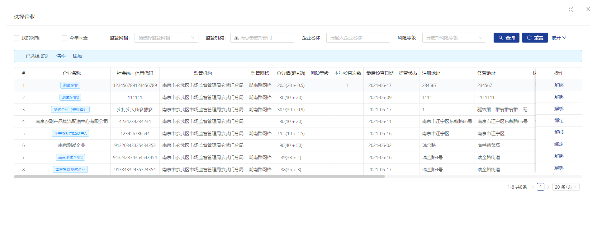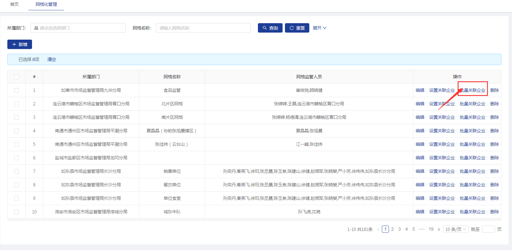 点击【设置关联企业】按钮,可以为网格组逐个绑定添加或解绑企业。