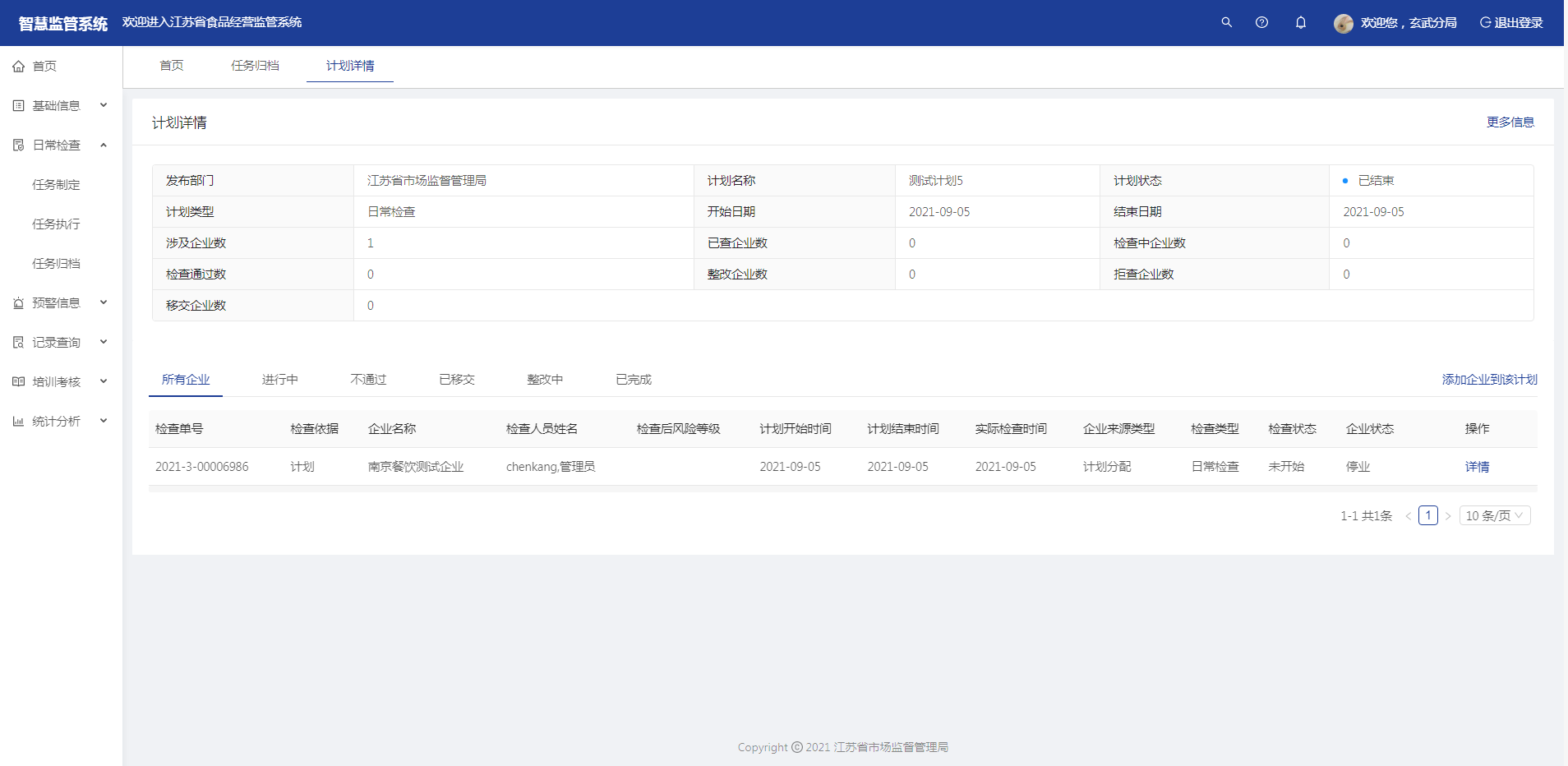 点击【详情】按钮同样可以查看计划下所有企业的检查详细记录。