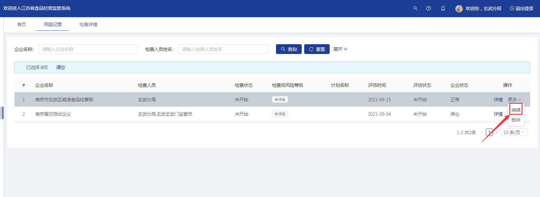 点击【编辑】按钮,可以修改风险评价记录。