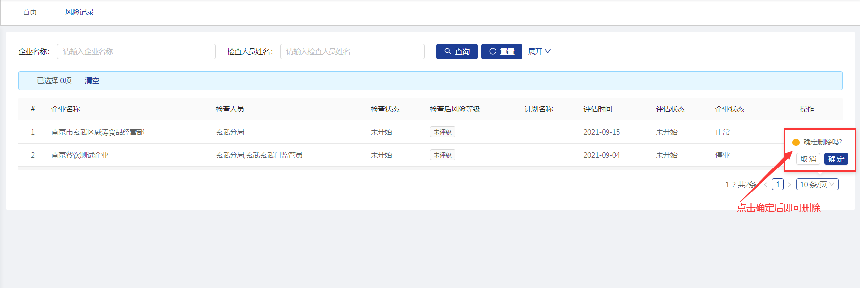 点击【删除】按钮,可以删除对应的风险评价记录。