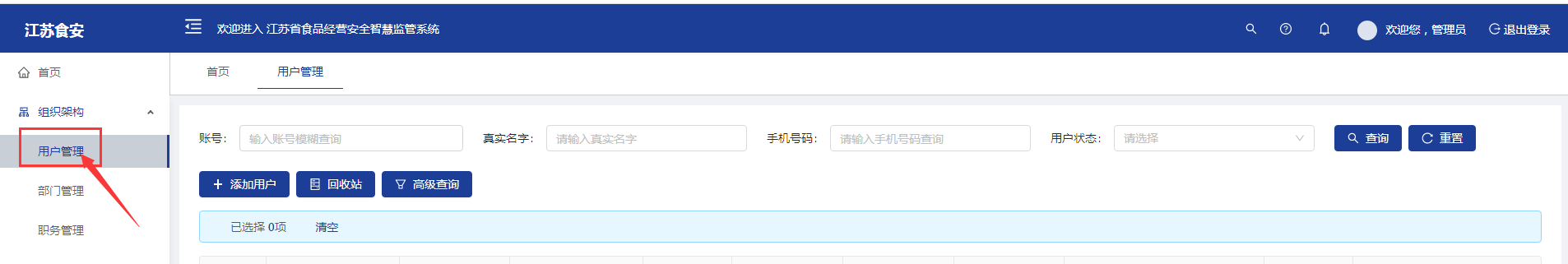 进入【系统管理】模块后,选择【用户管理】菜单进行账号的添加编辑以及授权。