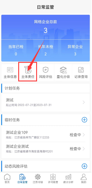 2.【主体责任】展示所有分配主体责任的企业信息。点击【主体责任】菜单,进入主体责任界面,可以看到所有需要完成主体责任任务的企业。