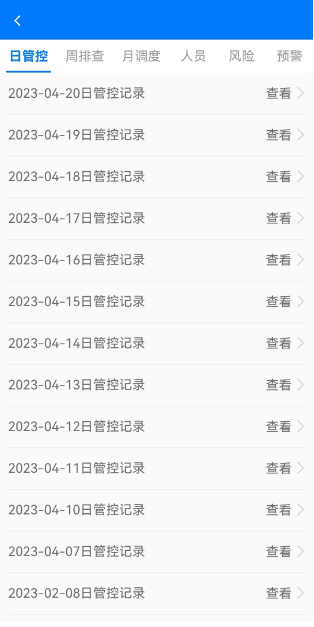 点击企业名称,可以看到企业完成的日管控、周排查、月调度、人员、风险以及预警信息。