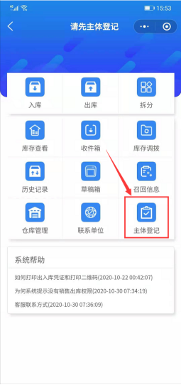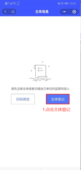 点击【主体登记】,依次录入企业、法人信息,若已有监管码,可直接扫码绑定,如图: