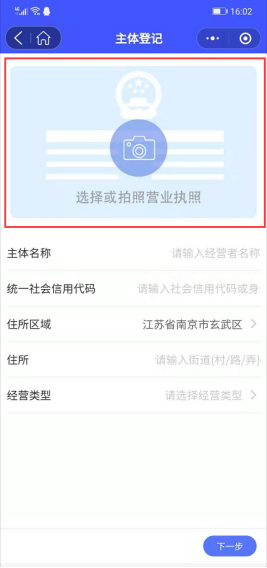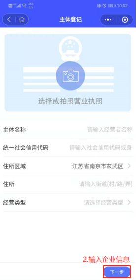 图3.3 上传企业营业执照 图3.4 录入企业信息