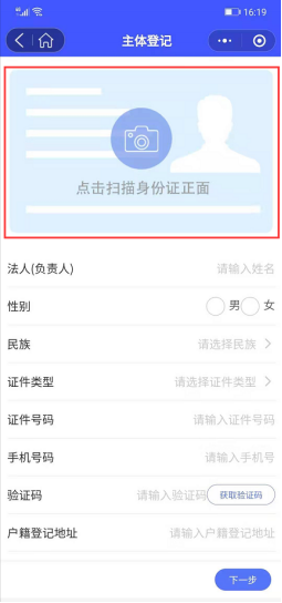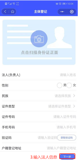 图3.5 上传法人身份照片 图3.5 录入法人信息