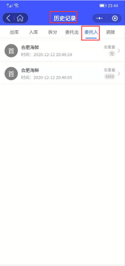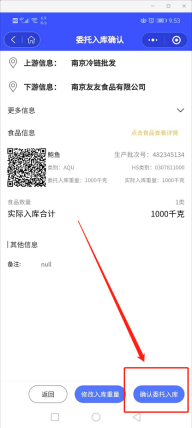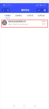 贮藏服务商确认后则可查看到库存和委托入库记录,如图:
