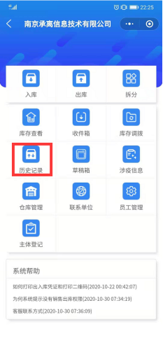 历史记录里可以查看该货品所有的流水操作记录,包括出库、入库、拆分、委托出库、委托入库及调拨,列表页单据皆按操作时间排序。