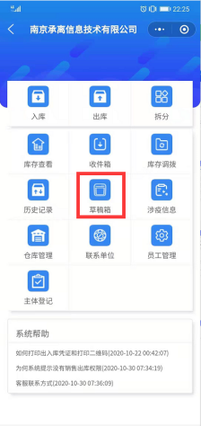 草稿箱相当于出、入库的暂存记录,出、入库确定时会提示保存到草稿箱还是正式出库,若选择保存到草稿箱,该单据还可在草稿箱中进行编辑或删除操作。