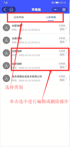 点击【草稿箱】,在头部菜单栏选择类型,选中需要编辑的单据,进行操作,如图: