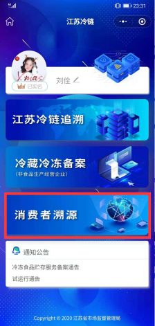 点击【消费者溯源】,扫描货品零售出库二维码,查看货物溯源详情,如图: