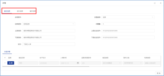 点击最右侧【详情】按钮可以查看自用出库详情,包括基本信息、进口信息和操作信息。
