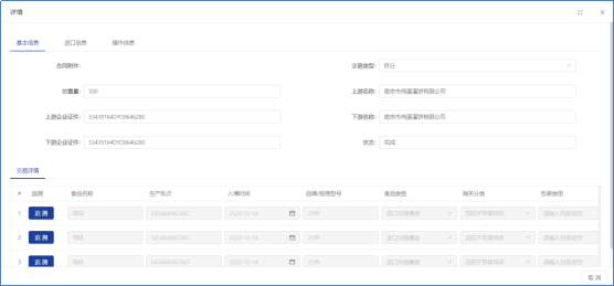 库存拆分可以查询所有的拆分操作记录。并可以根据食品来源、检验检疫证编号、出入库日期、原产国、入境口岸、上下游企业证件、上游名称、下游企业编号等条件进行搜索。
