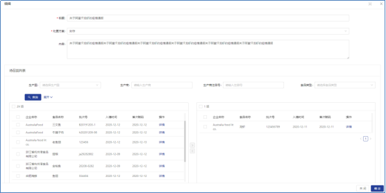 点击问题处置列表最右侧的编辑和详情按钮可以修改及查看相应的问题食品信息。