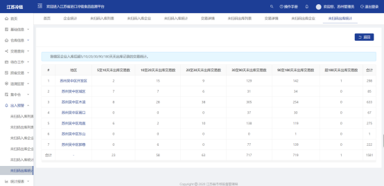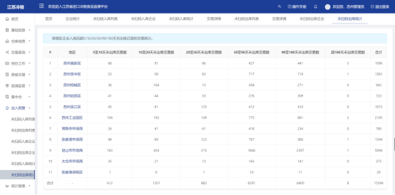 统计本市各区不同时间段的未出库交易数,点击区名可以该区下辖各分局的不同时间段未出库交易数。