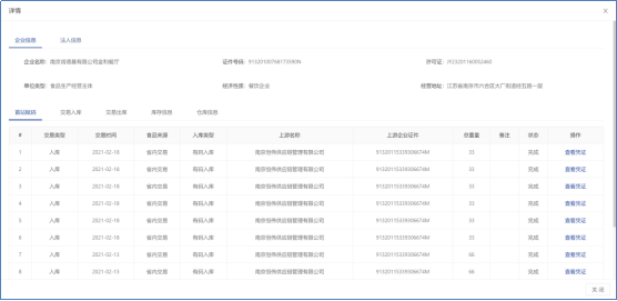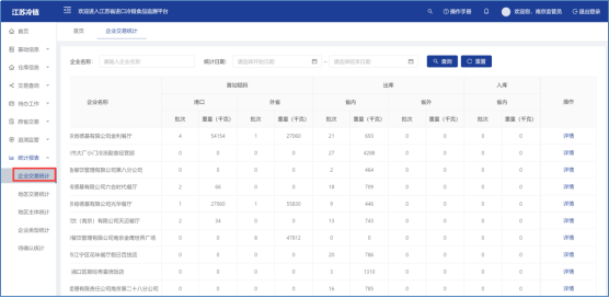 点击右侧【详情】按钮可以查看该企业的详细出入库详细和首站赋码详细。