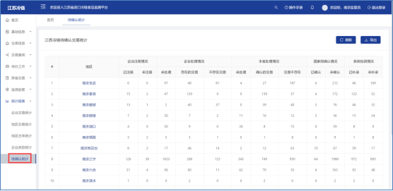 统计本市各个区域的待确认信息,包括企业注册情况、企业处理情况、本省处理情况、国家局确认情况以及系统检测情况等。