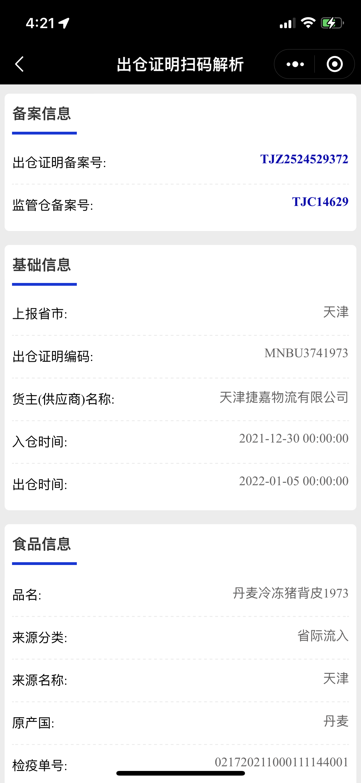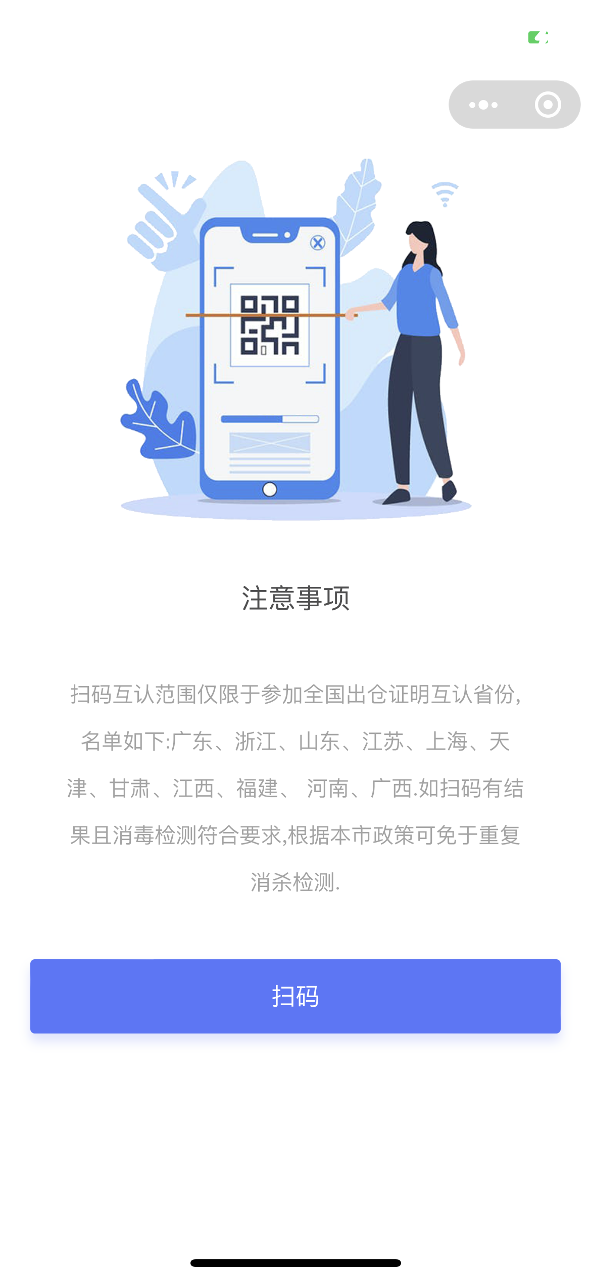 根据《进口冷链食品追溯管理平台集中监管仓数据要求》中对“出仓证明互认二维码”的要求,实现了各省通过扫码获取在国家平台进行备案的出仓证明信息,完成跨省互认.目前扫码互认范围仅限于参加全国出仓证明互认省份,名单如下:广东、浙江、山东、江苏、上海、天津、甘肃、江西、福建、 河南、广西.