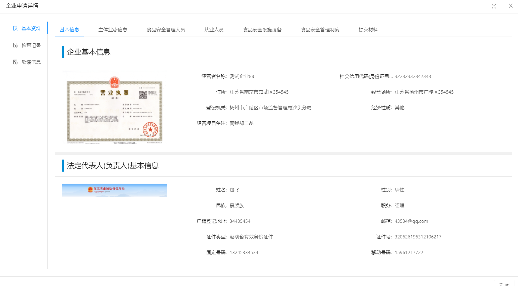 3.通过选择页签可以查看对应业务许可申请记录信息。