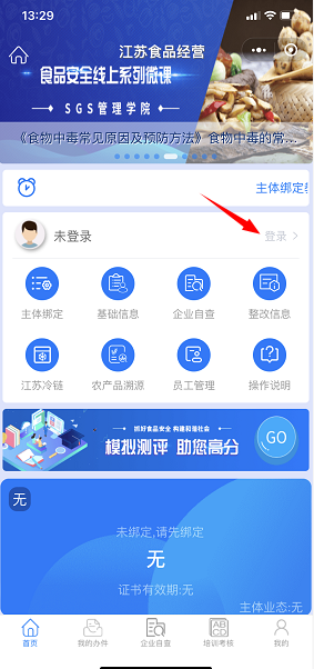 第一步:进入小程序后,点击【登录按钮】,如图: