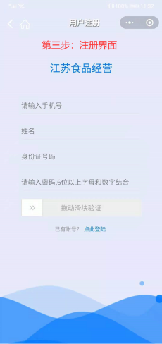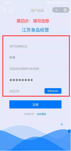 第四步:输入手机号、姓名、身份证号码、密码,并输入验证码,如图,即可注册成功。