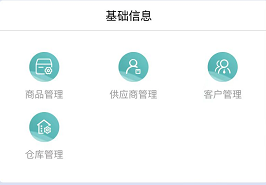 基础信息中包括:商品管理、供应商管理、客户管理及仓库管理四个菜单。