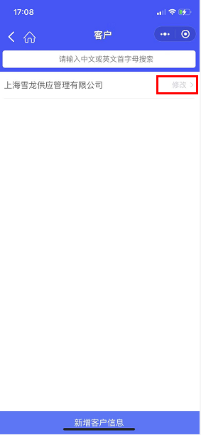 2.修改及删除客户信息,选择一条客户信息,点击“修改”,可以对客户信息进行修改及删除操作。