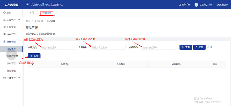 企业可以根据食品类别、食品名称、食品编号查询商品信息。