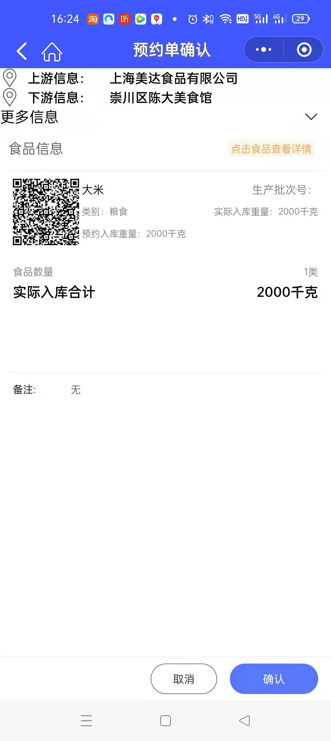选择一条数据,查看预约单确认,点击商品可查看商品详细信息。点击【确认】预约通过。