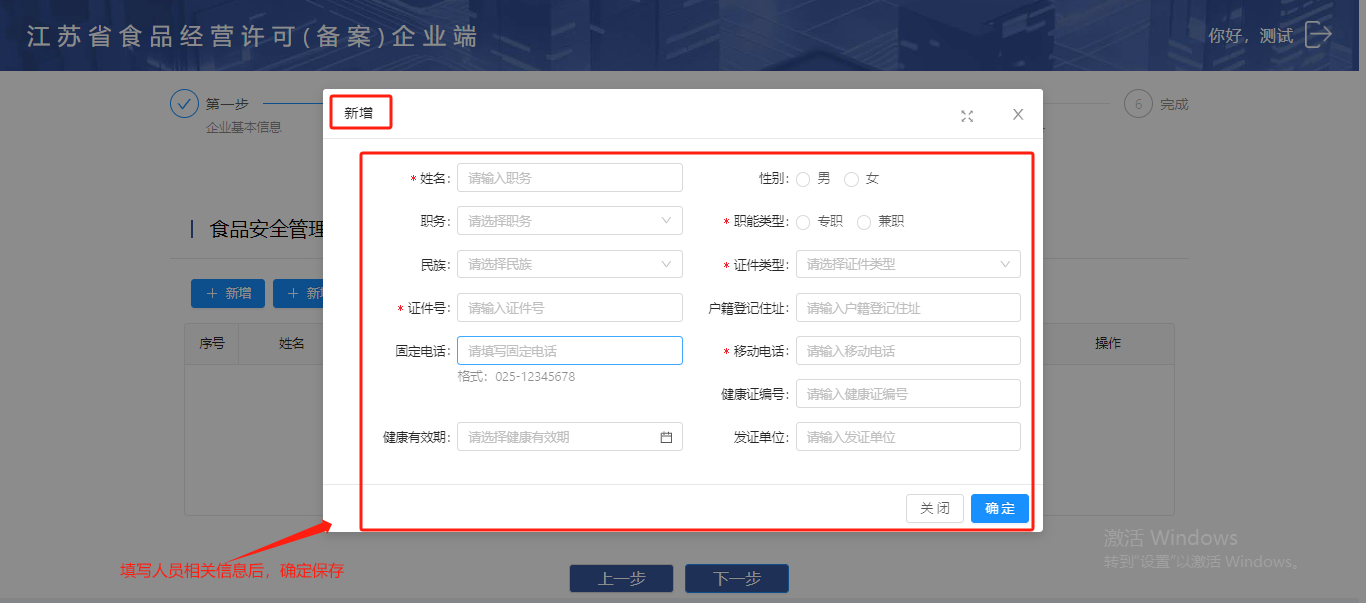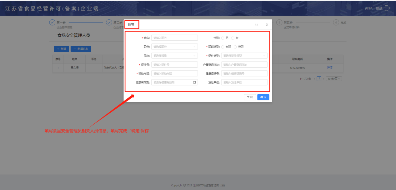 第三步:添加食品安全管理员