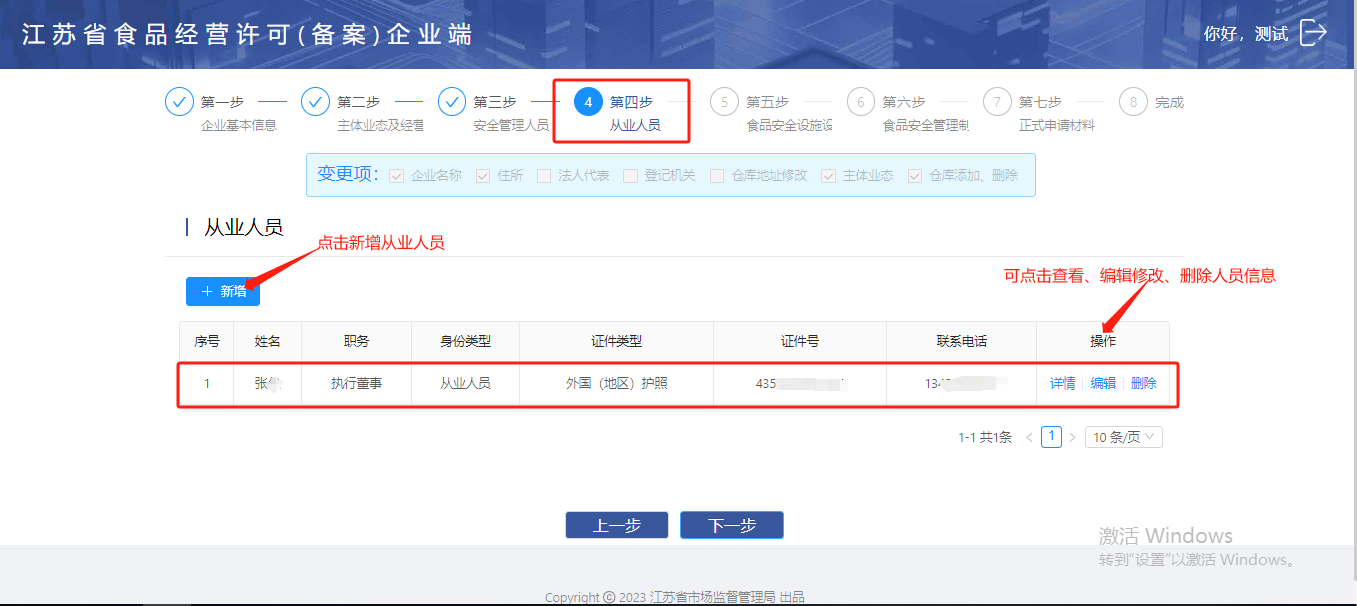 如需要新增或修改从业人员,可直接点击【新增】按钮添加人员信息