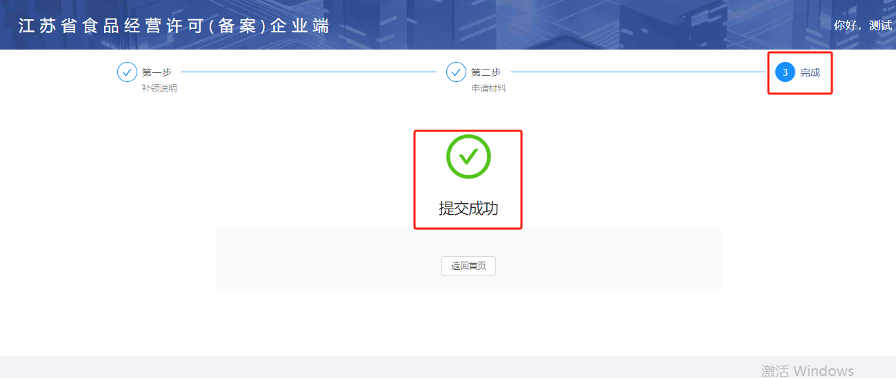 第三步:补证材料提交完成后,系统会显示【提交成功】